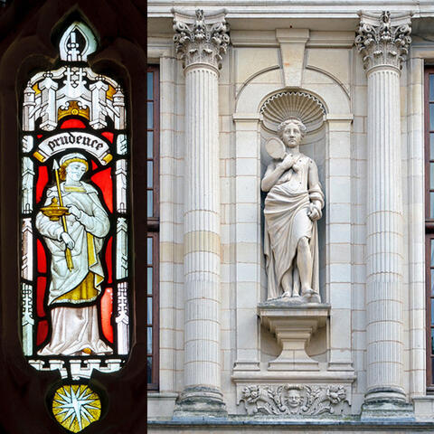 In many works of art, the cardinal virtues were traditionally represented with symbolic elements: